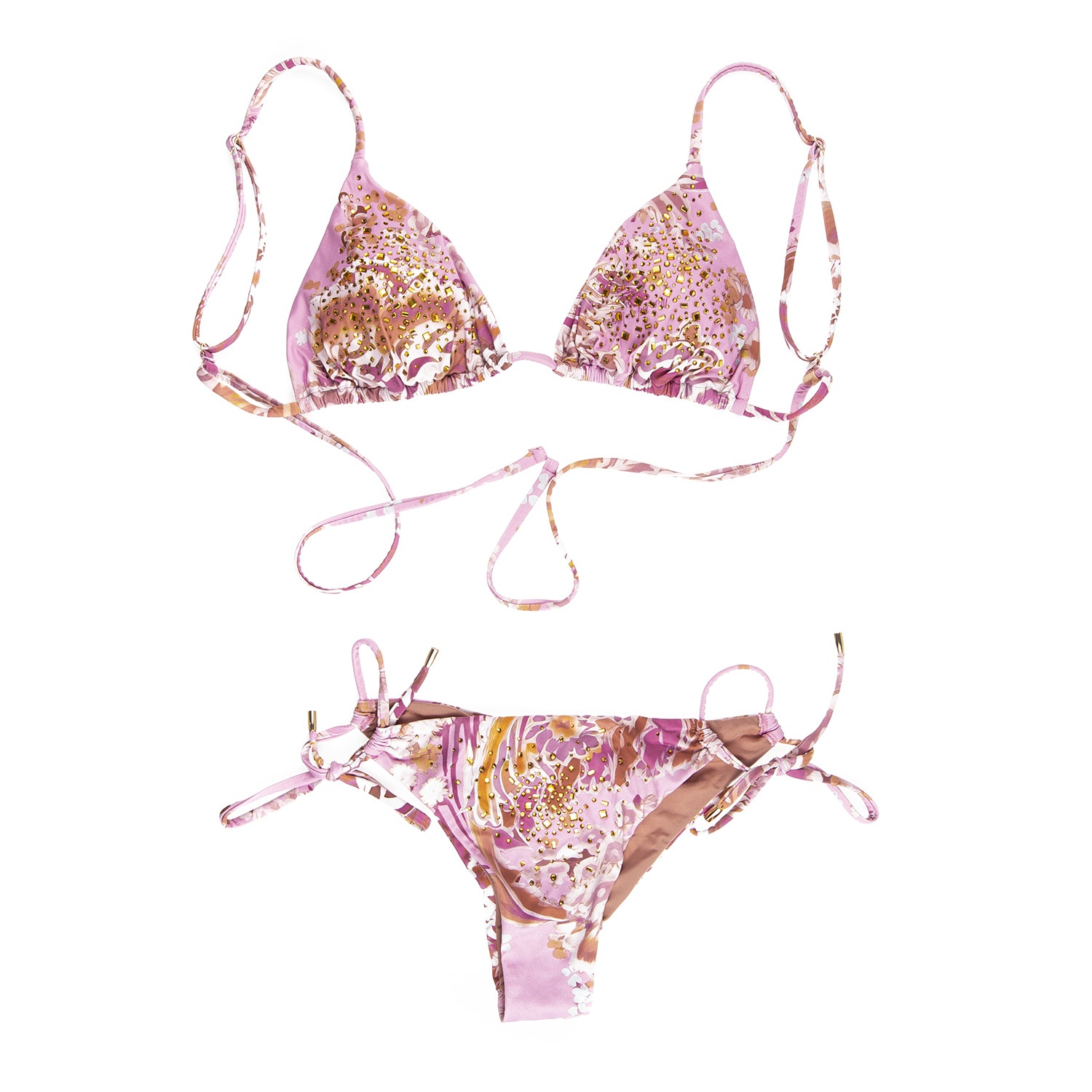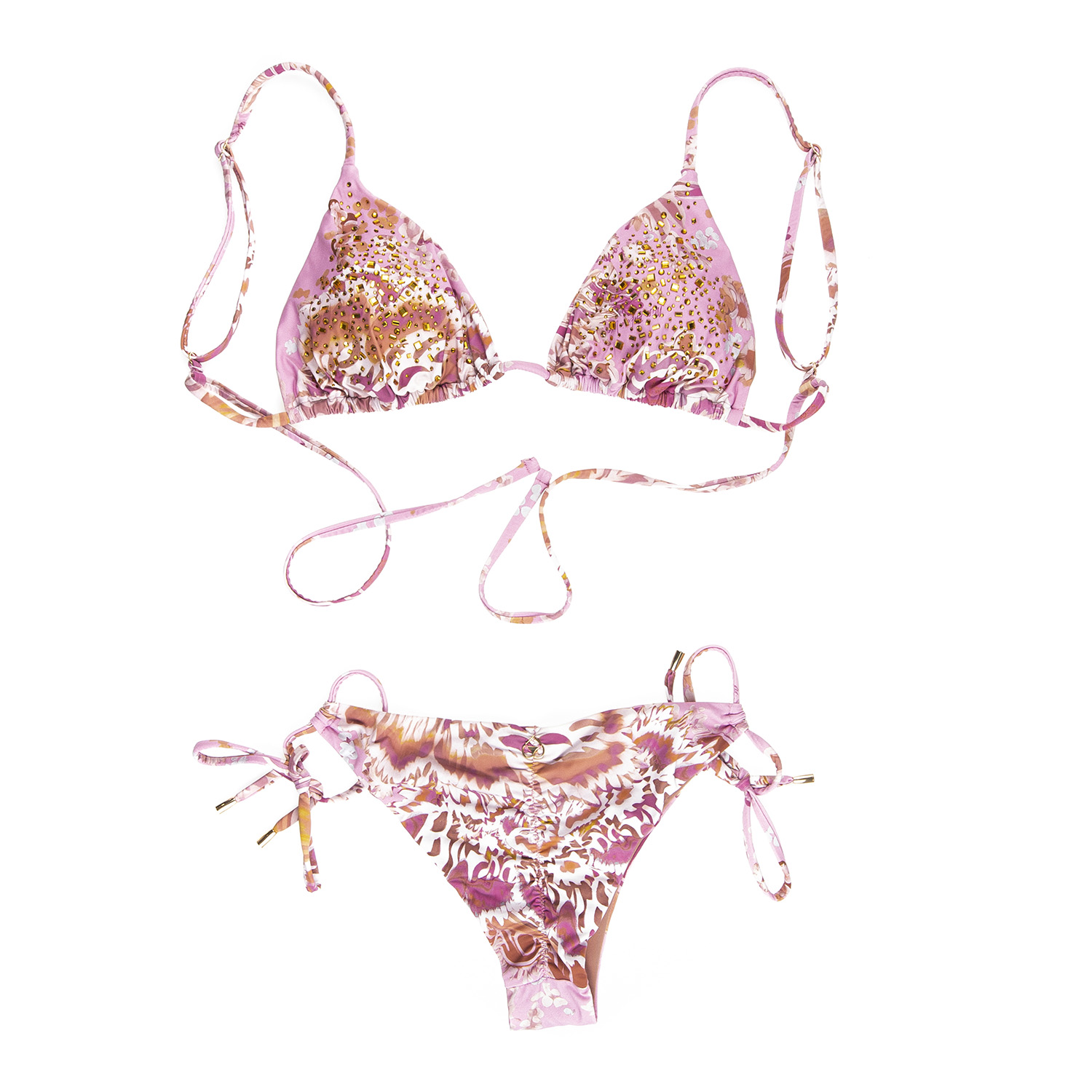 Dettagli: Bikini triangolo con strass e slip brasiliana MISSBIKINI Composizione: Poliammide 72%, Elastan 28%Lavaggio: lavaggio delicato